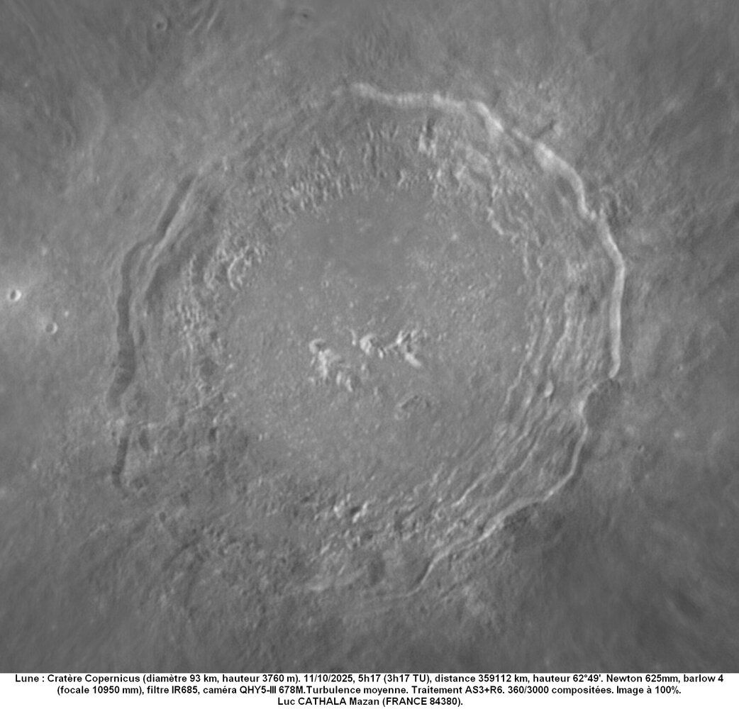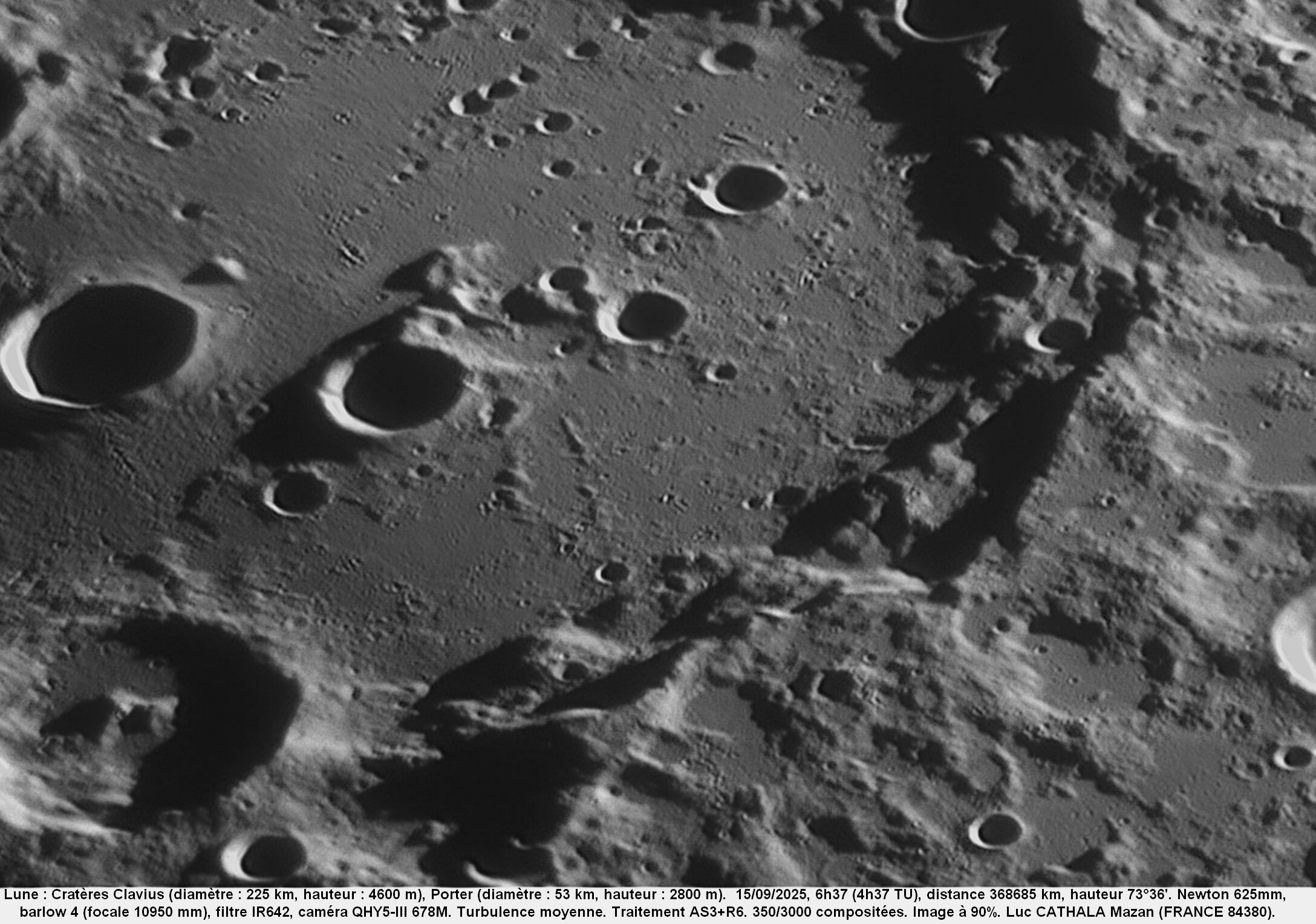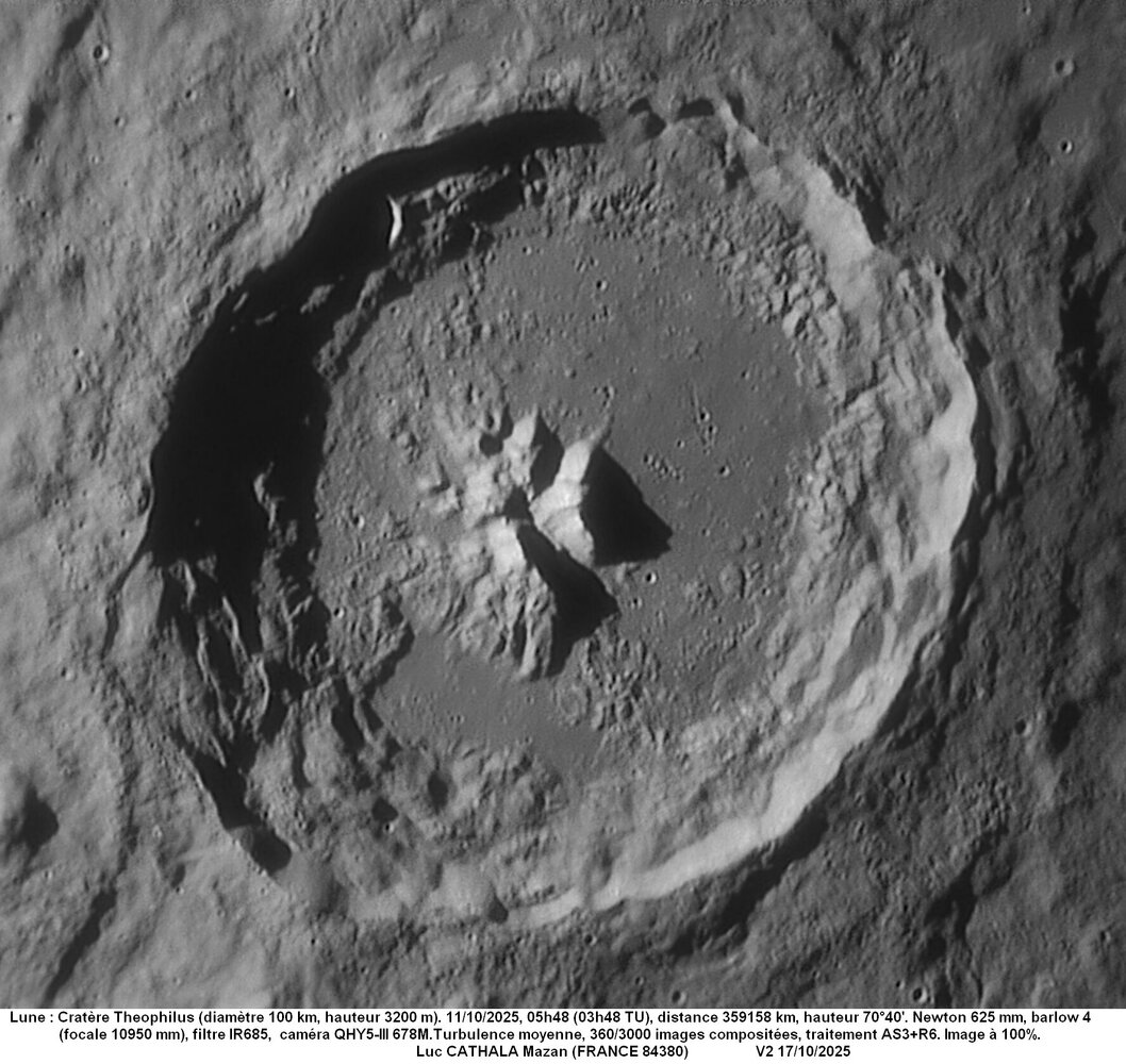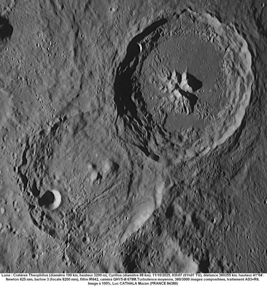 Cette vue du trio de cratères lunaires Catherine, Cyrille et l Théophile. Image réalisée avec mon C14 + Cam QHY 174 mm dans la nuit du 9 au 10 octobre 2025