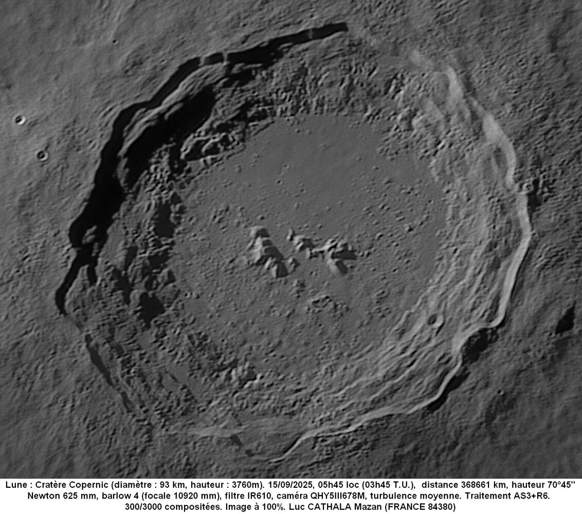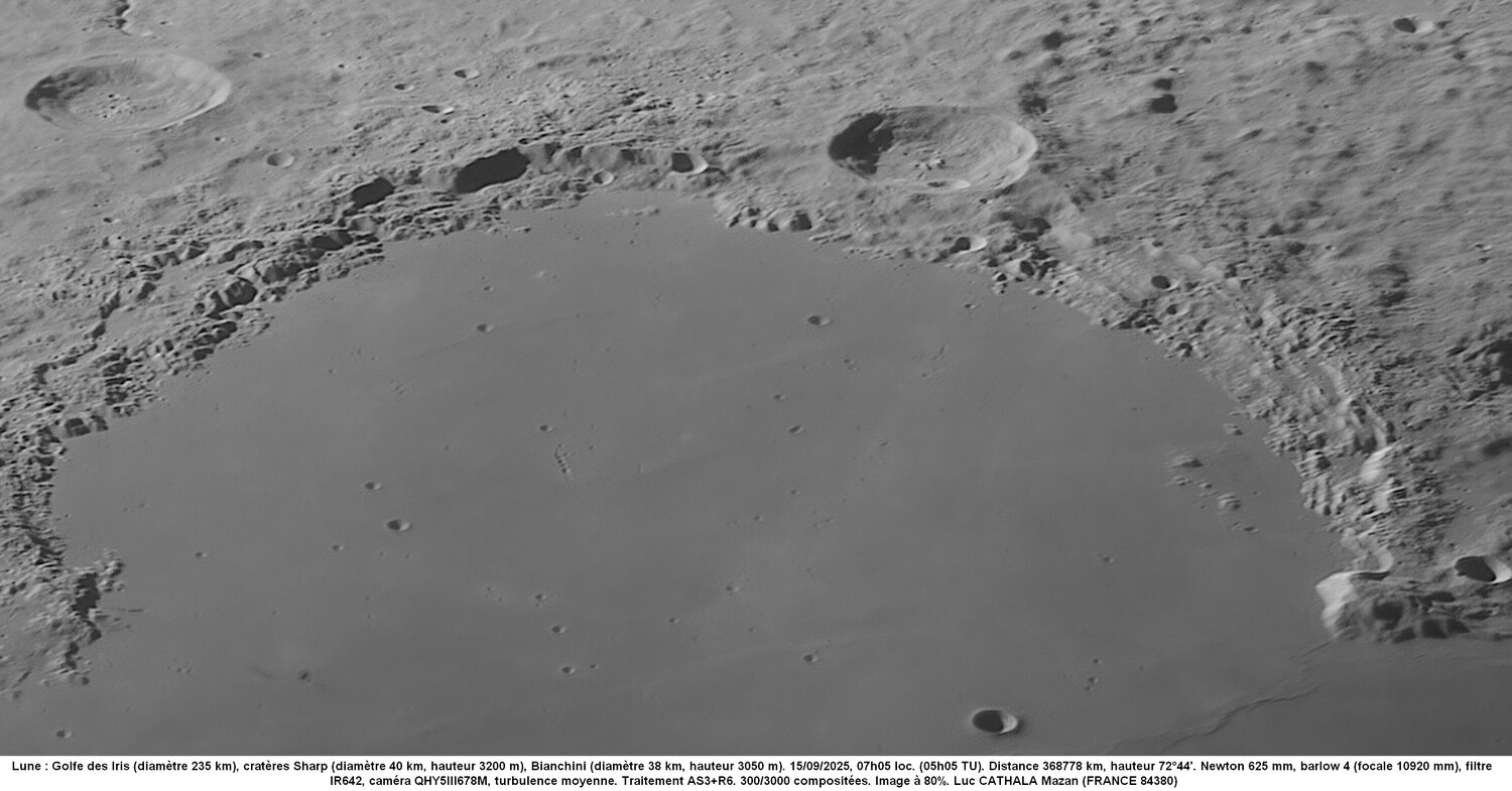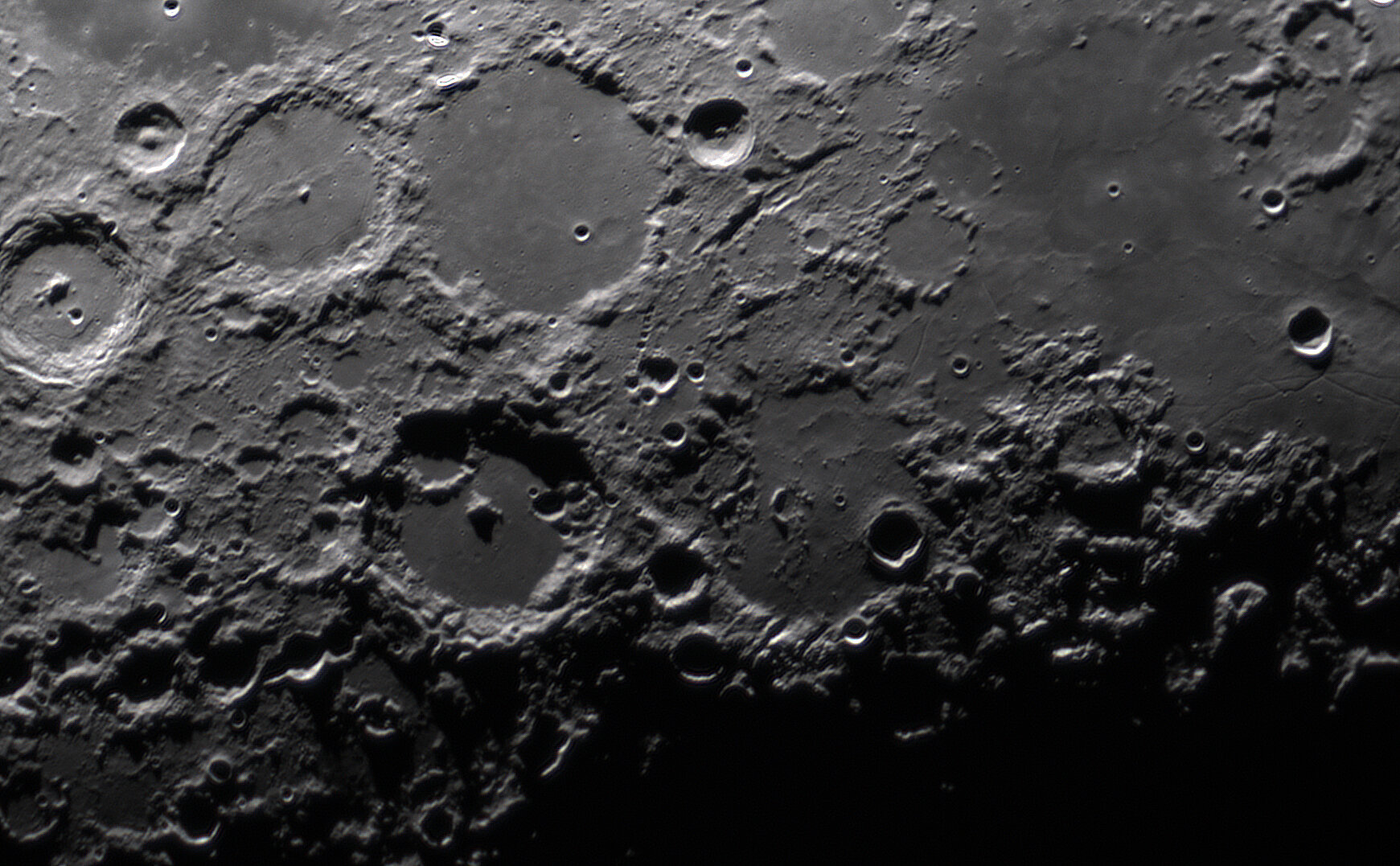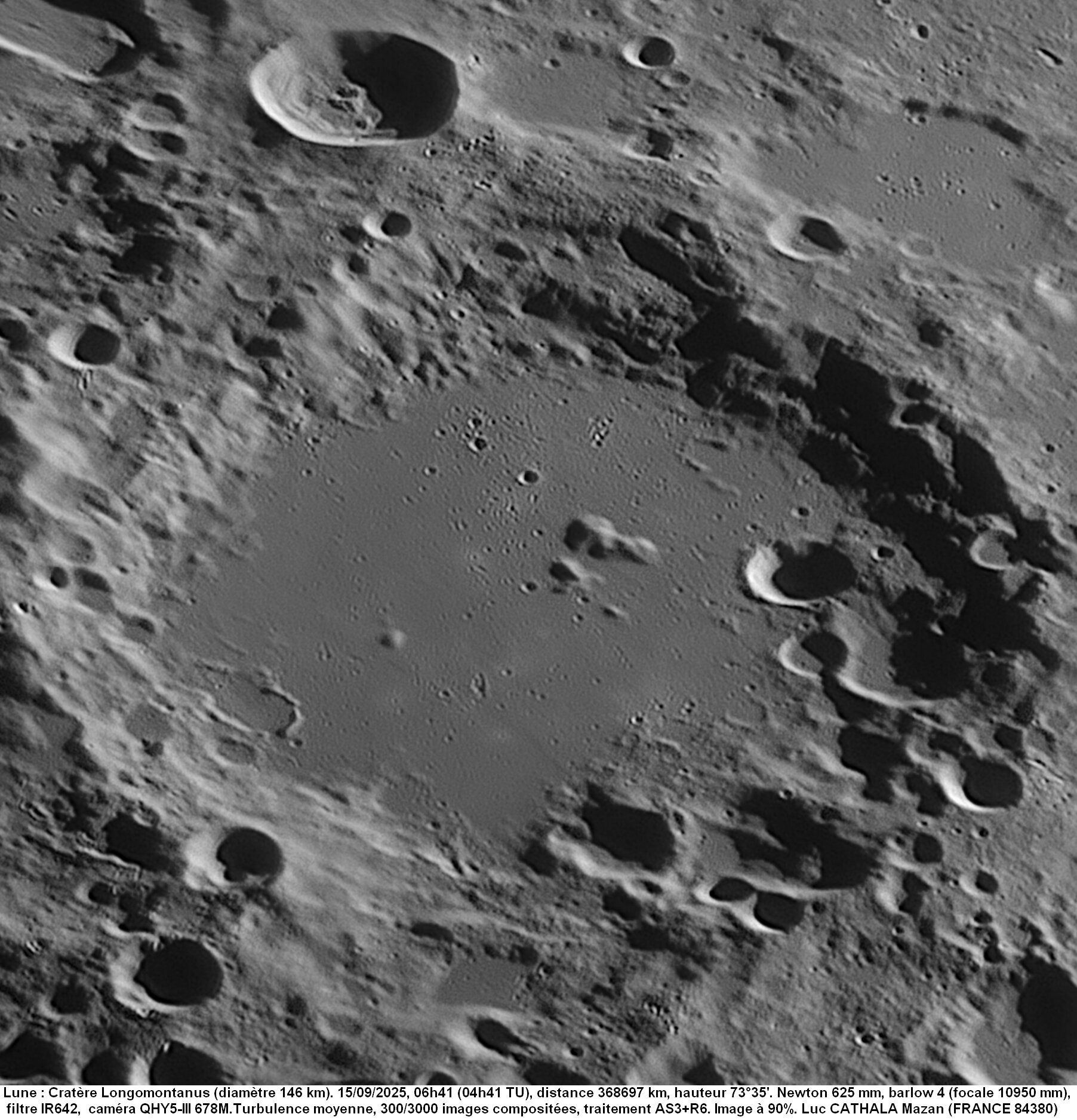 Cette vue du trio de cratères lunaires Catherine, Cyrille et l Théophile. Image réalisée avec mon C14 + Cam QHY 174 mm dans la nuit du 9 au 10 octobre 2025