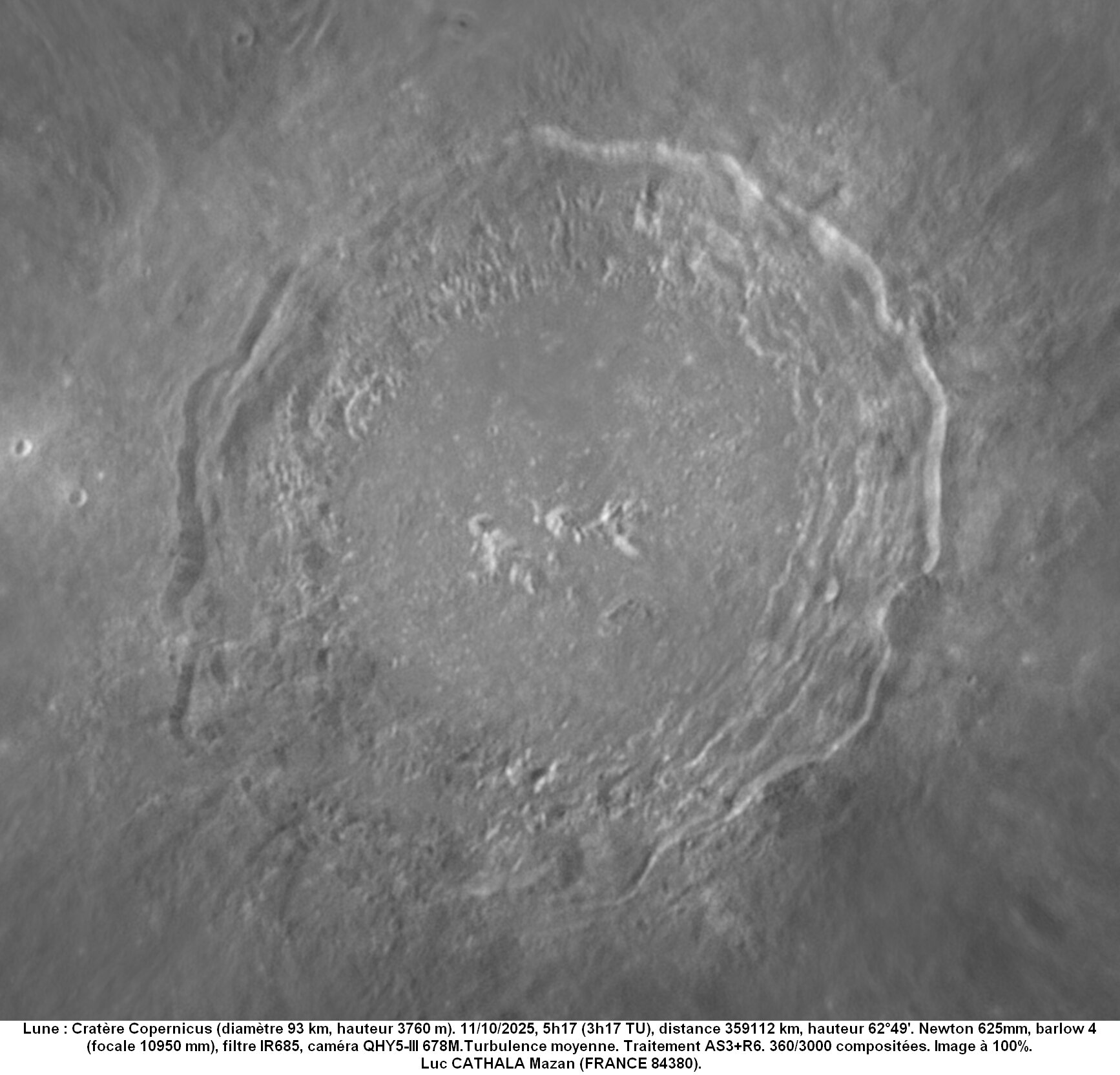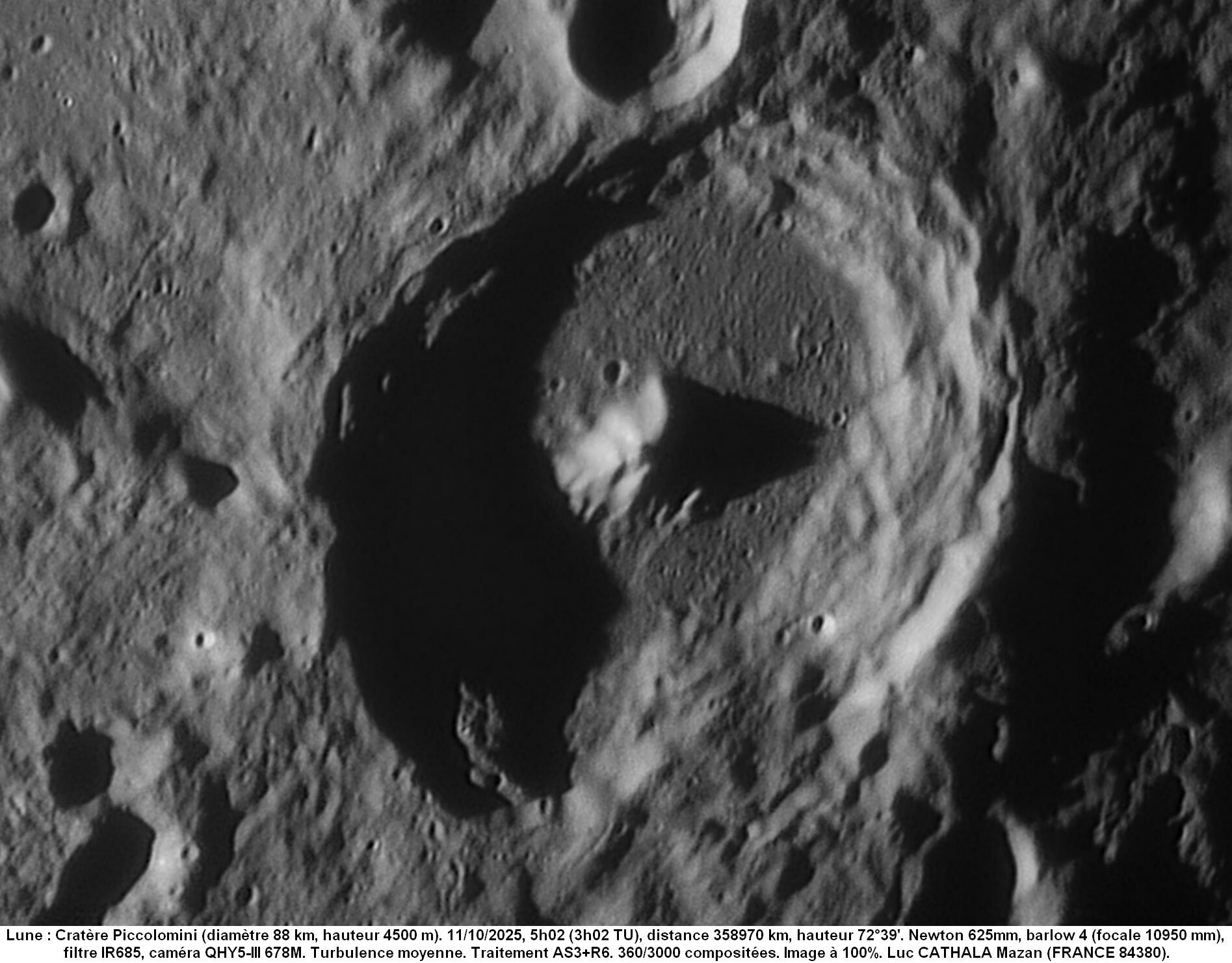 Haute résolution lunaire du 11/10/2025 625 mm et QHY5III678M