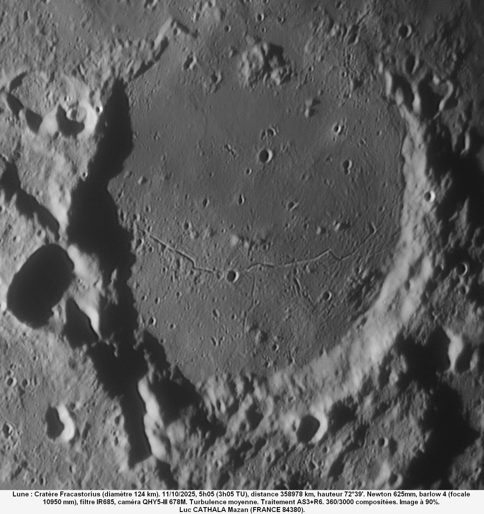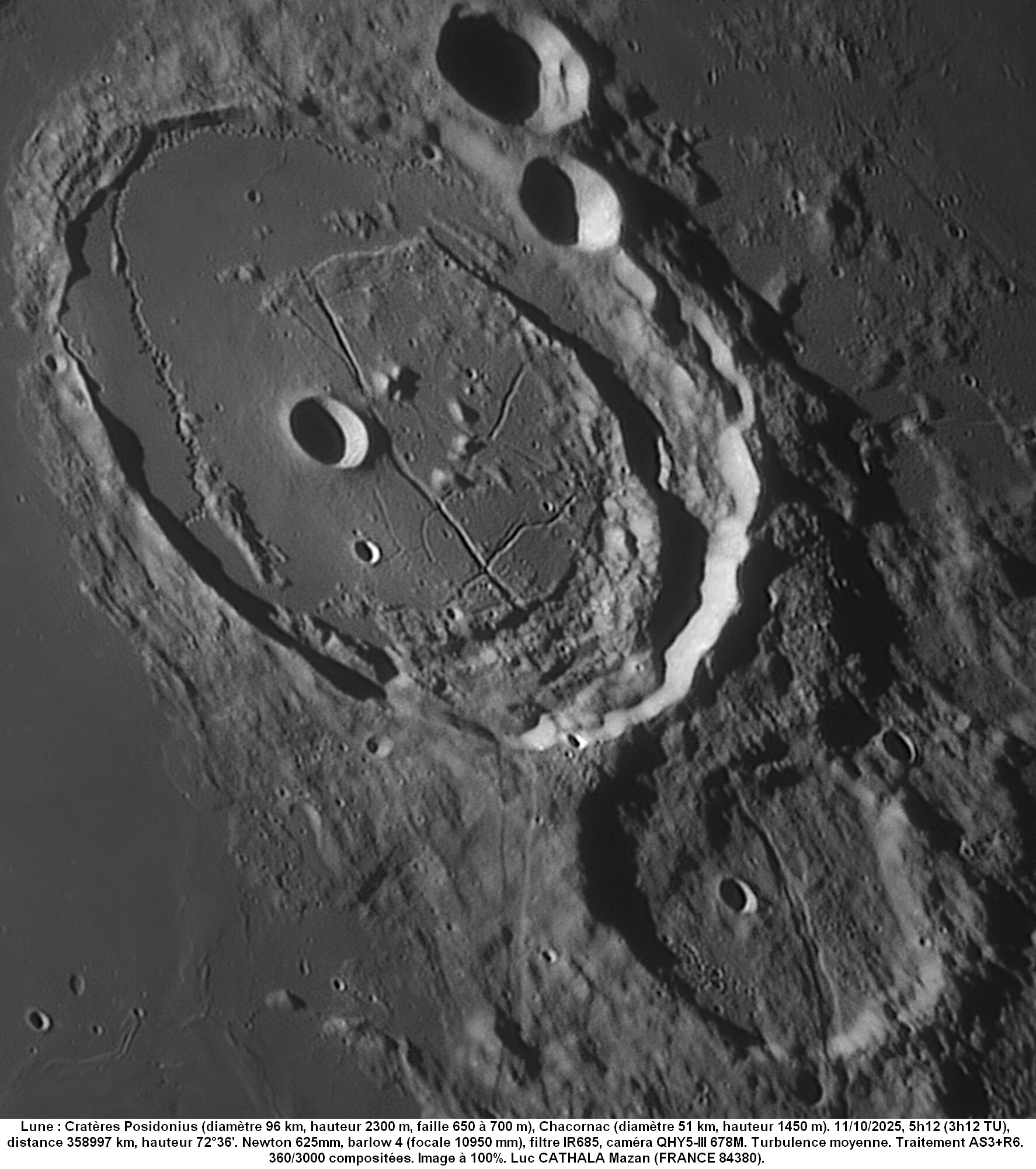 Bonjour J'ai fini de traiter toutes les images de la lunaison d'octobre. Pas mal de déchets mais quand même de belles réussites qui sont mes meilleures de ces cibles. Théophilus, Fracastorius et Posidonius depuis bien longtemps je courrais après ces deux derniers. J'ai travaillé en IR 685 pour la barlow 4 et en 642 pour la barlow 3. La 4 me permet quand même une meilleure résolution. Bonne promenade. Luc- 10 réponses