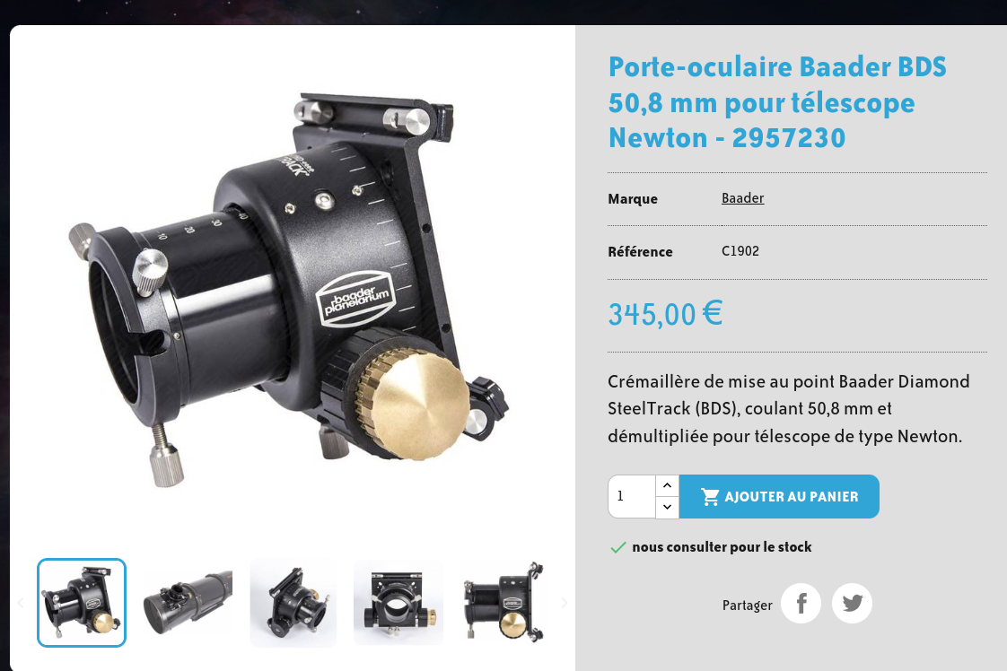 Bonjour, Je possède un Newton 300 F/D4 de marque Skywatcher. La bague porte oculaire est vraiment de piètre qualité et il est pour ainsi dire impossible d'obtenir une collimation correcte ainsi qu'un bon alignement du train optique. Je pense acheter Un ClickLock M54a x 1 (réf 2956254) de chez Baader, mais le "hic" est que le diamètre externe de mon pas de vis fait 54.3mm et non 54! J'ai lu sur que certaines personnes utilisaient du frein filet (genre Loctite bleu), mais cette colle est-elle assez dure pour éviter la flexion due au poids du train optique et n'y a t-il pas danger à l'arrachement vu le jeu entre les pas? D'autre parlent de faire usiner une bague adaptatrice, solution plus sûre, mais le coût n'est plus le même. Merci de vos retours. Alain