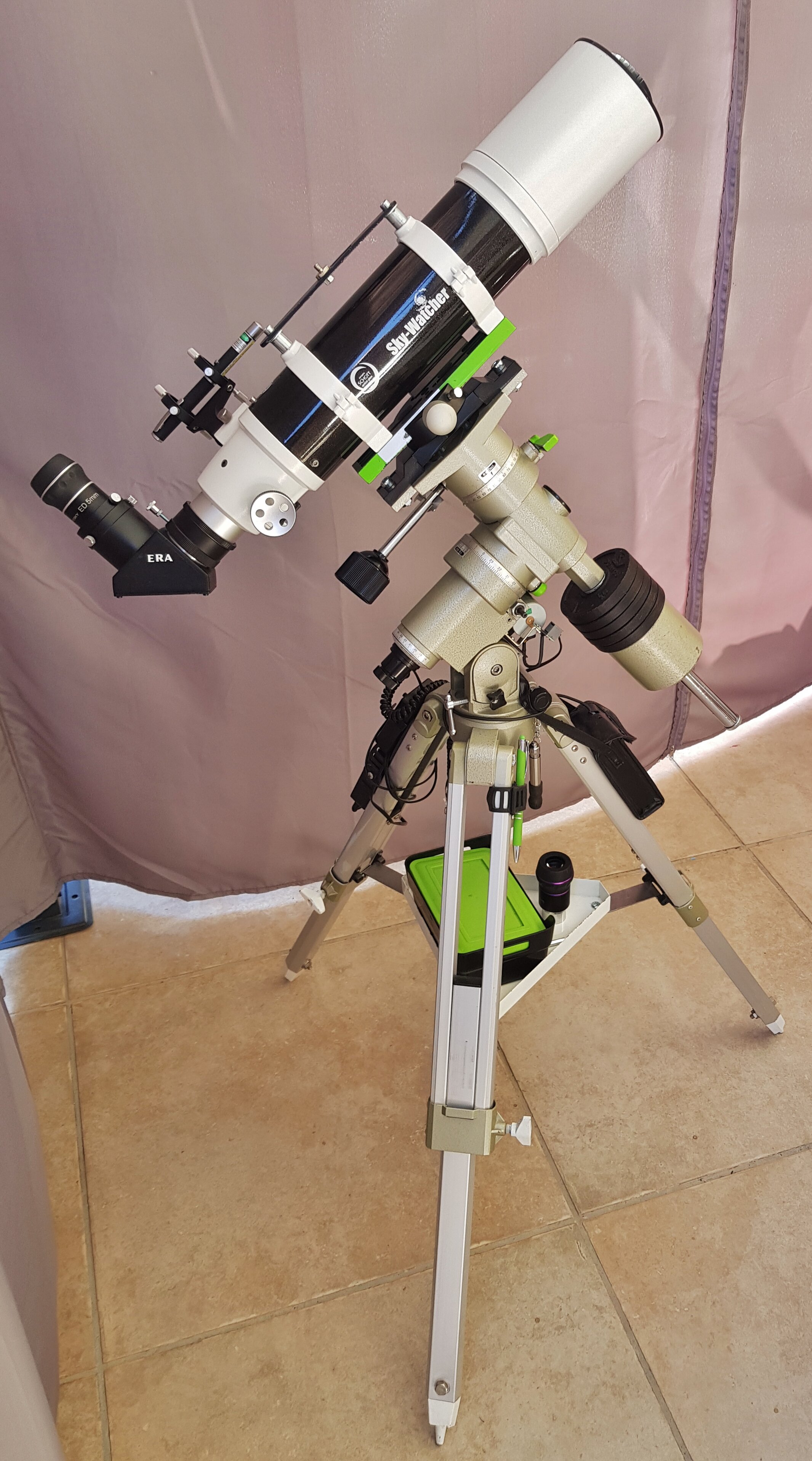 Bonsoir, Je pense avoir fait une affaire. Une lunette 152/1200 avec sa monture, une Barlow x2 2", une Barlow x3 en 31.75, 6 filtre couleurs, 4 oculaires pour........ 60 € !! Quand j'ai vu l'annonce, j'ai cru à une arnaque. J'y suis allé et non, pas d'arnaque. Juste une personne fort sympa qui avait récupéré la lunette lors d'un déménagement..... Pouvez vous me donner votre avis. Est ce un clone d'une bresser 152/1200 ? Elle est estampillée M42 optic. Merci