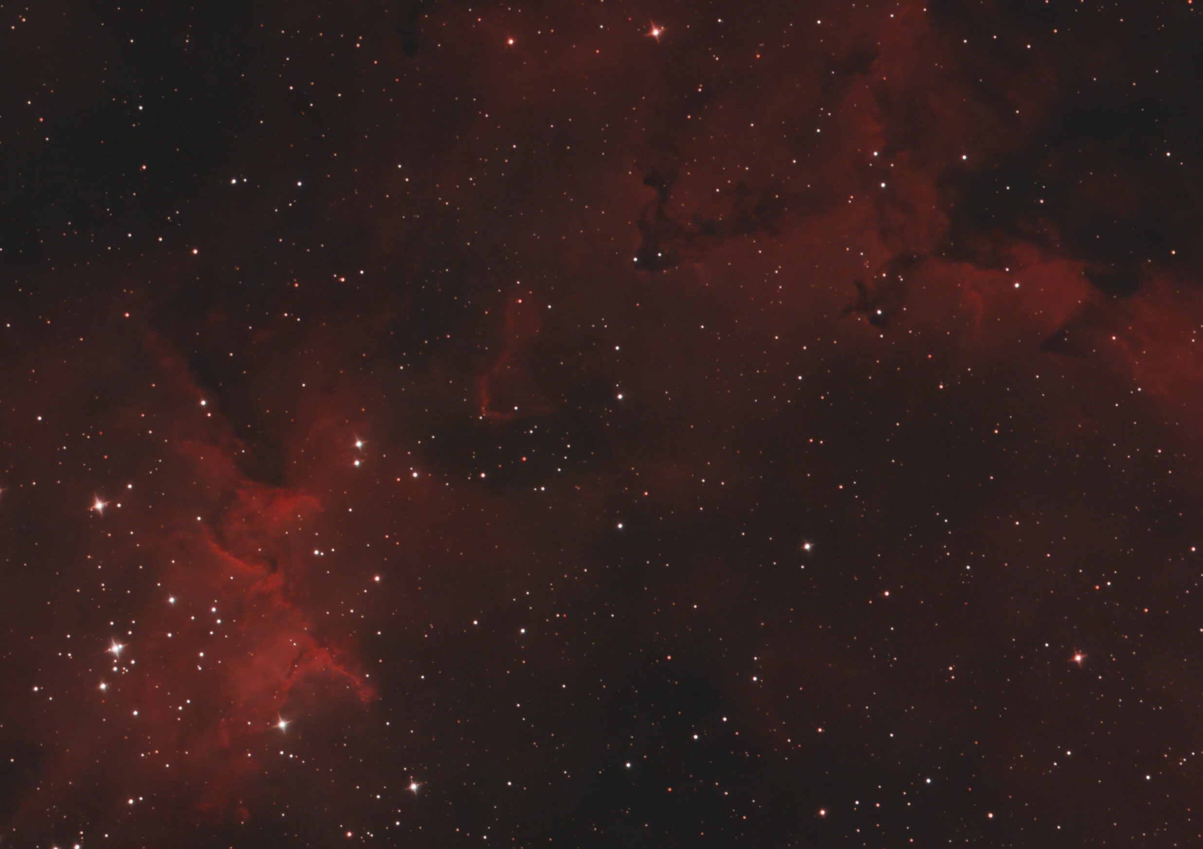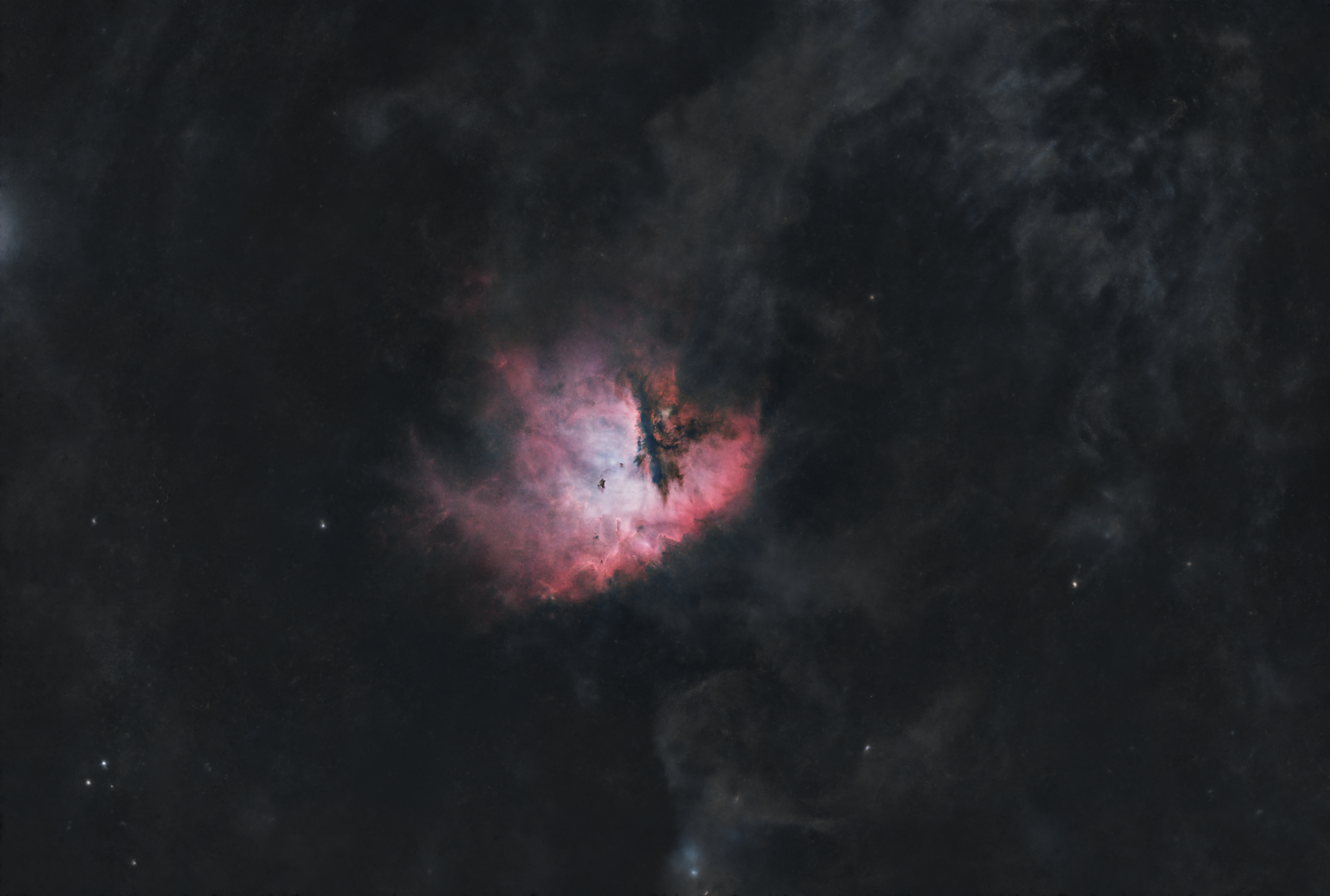 Cible plus compliquée que je ne pensais, j’ai dû monter à plus de 10h d’acquisition par canal pour avoir quelque chose à traiter sans devoir pousser tous les curseurs (pour IC1396 je suis resté à qqs heures) Je pense qu’il va même falloir que je rajoute du temps de pose car ce n’est pas encore très fin… et rajouter des panneaux car le lien avec l’âme est vraiment super esthétique bref, SHO zwo 7nm, grosso modo 10h sur chaque (peut être un peu plus sur oiii) FS60CB avec correcteur 0.72 donc 255mm f4.2 SIRIL + GIMP Pour la composition j’ai fait (commentaires bienvenus…) post traitement de chaque canal sous SIRIL par soir je me retrouve donc avec un répertoire de pp_Ha par soir alignement et empilement de tout les « pp ». j’arrive donc avec tous les soirs empilés pour chaque canal alignement des trois canaux puis starnet composition RGB (TSL) L = Ha R = Sii G = Ha B = Oiii étalonnage couleurs suppression bruit vert puis GIMP (ajout starmask) je pense tester avec L = SHO empilés 🧐 Je pensais que cette cible serait simple, mais elle me donne envie de sortir du centre ville pour avoir du ciel plus clair…