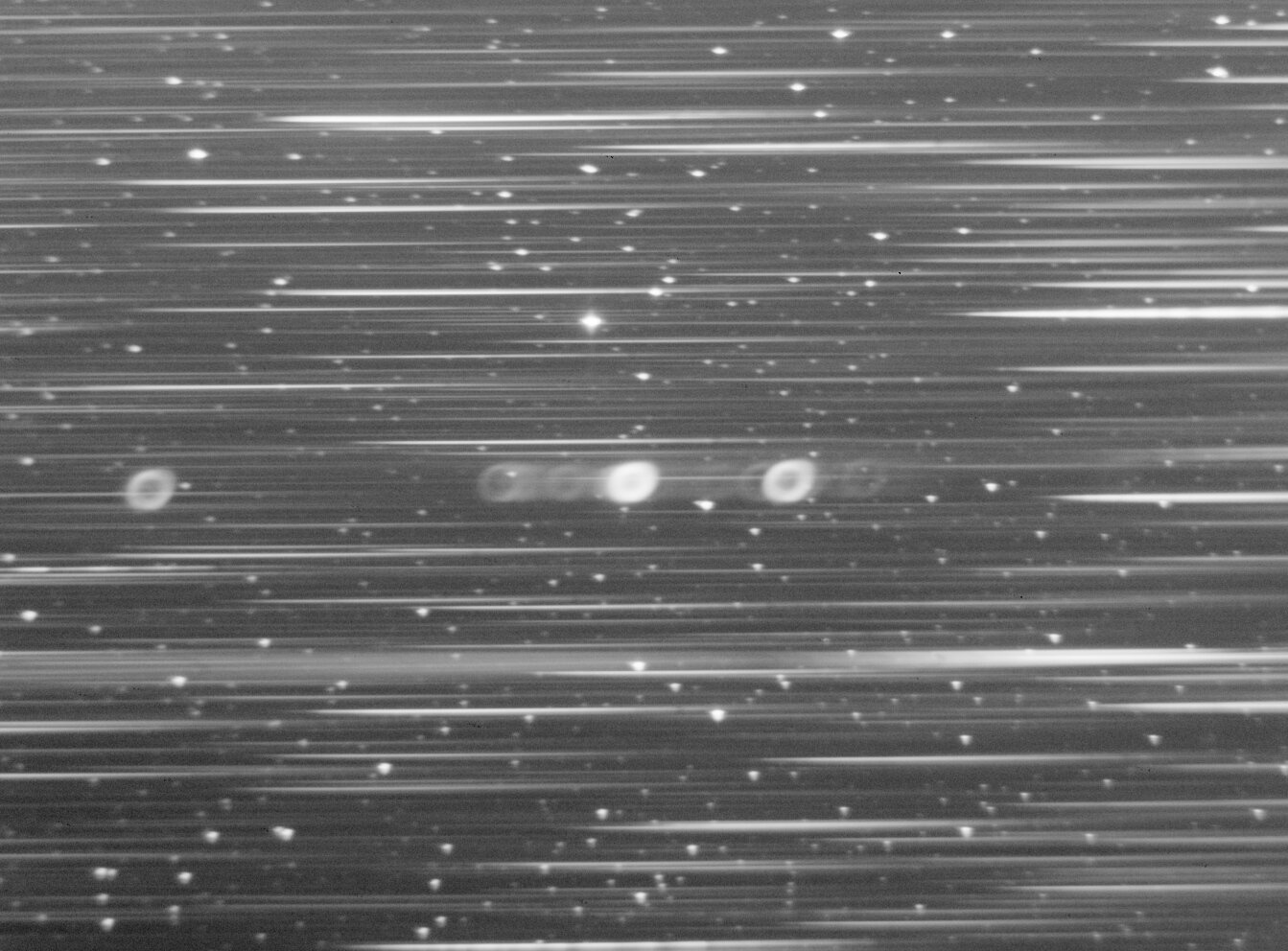 Salut à tous ! J'avais prévu la manip de mesurer la vitesse de rotation de M33 grâce aux nébuleuses de ses bras (par leur redshift). Hier soir il faisait beau chez moi.. mais M33 était bien cachée dans le halo de la quasi pleine Lune Je me suis donc rabattu sur M82 pour faire la même manip mais sans avoir potassé le truc.. ce qui m'occasionne certaines difficultés maintenant. En attendant un hypothétique résultat, j'ai fait une compil de la manip : C9XLT, réducteur x0.63, Alpy 600 et IMX585 L'image de M82 a été faite en début d'année, c'est juste pour illustrer le truc. J'ai orienté la caméra d'acquisition pour avoir les bras de M82 alignés sur la fente du spectro (image de PHD2, on la devine sur les poses de 2"). La "tranche" de M82 qui passe dans la fente va dans le spectro, est diffractée et ça donne l'image en "code barre" avec des émissions en Ha, Hb et des [raies interdites], non reproductibles sur terre. Cette image traitée (réduction de données) des 11 x 600" donne le spectre calibré en longueurs d'onde. Puis quelques opérations plus tard, le verdict tombe : M82 se déplace à 214 km/s ! M82 vue en spectro, les filaments sont bien rouges ! Ce soir il doit faire beau et la Lune est encore plus forte